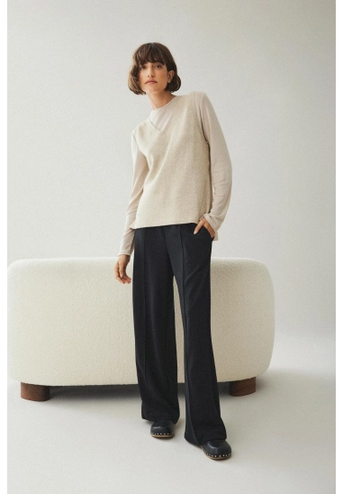 De pantalon heeft een elastische band met tunnelkoord. De broek heeft een hoge taille.
