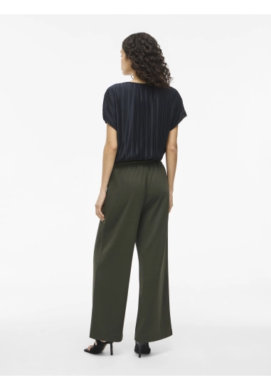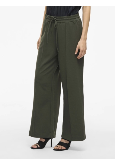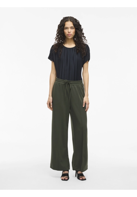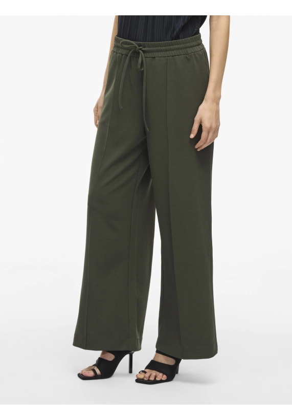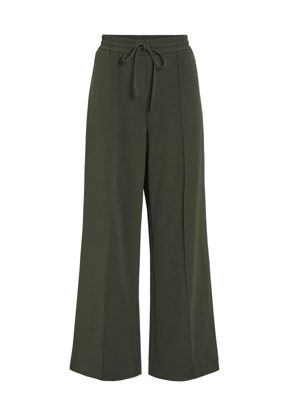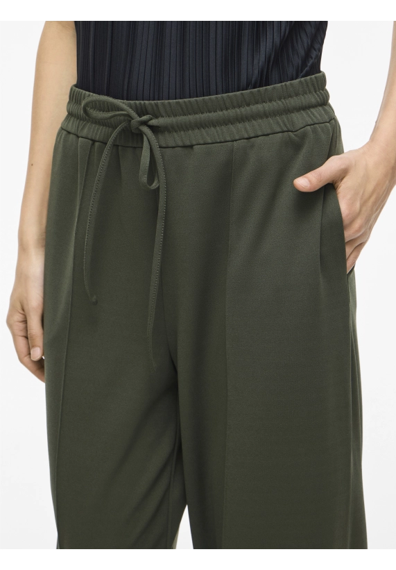 De pantalon heeft een elastische band met tunnelkoord. De broek heeft een hoge taille.