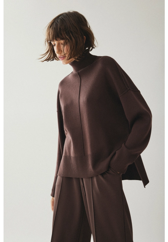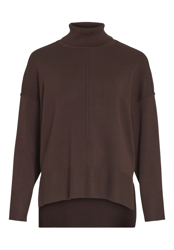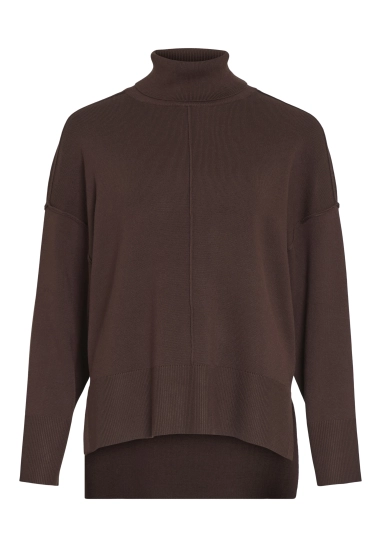 Gebreide coltrui Ostria voor dames van het merk Vila. De trui is verkrijgbaar in zwart, bruin en beige.