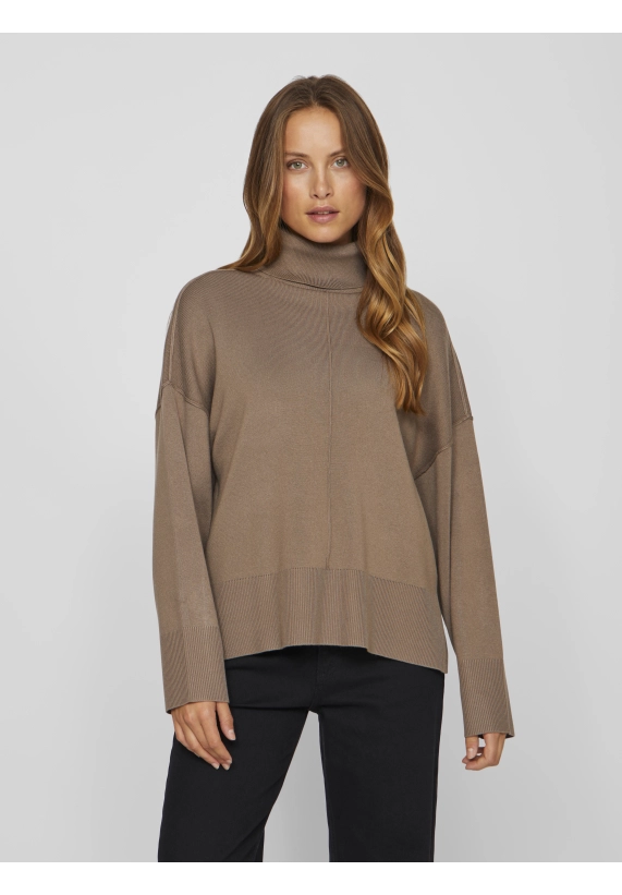 Gebreide coltrui Ostria voor dames van het merk Vila. De trui is verkrijgbaar in zwart, bruin en beige.