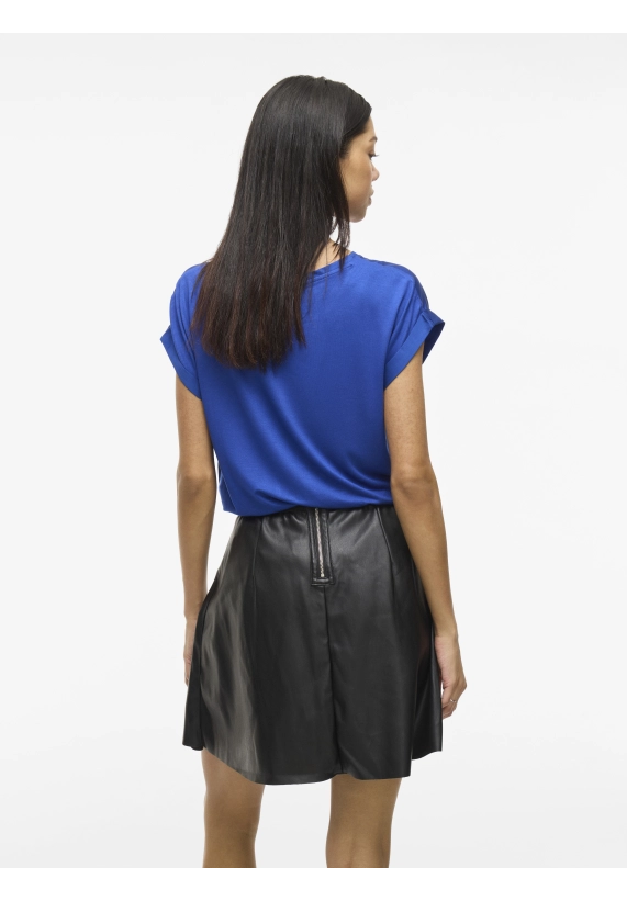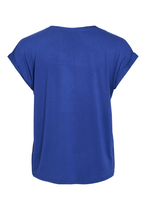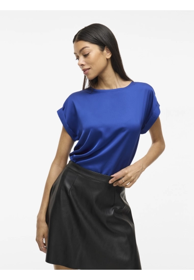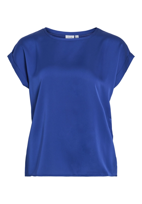 Shirt Ellette voor dames van het merk Vila. Het shirt met korte mouwen en een ronde hals heeft een satijne voorkant. Verkrijgbaar in diverse kleuren.