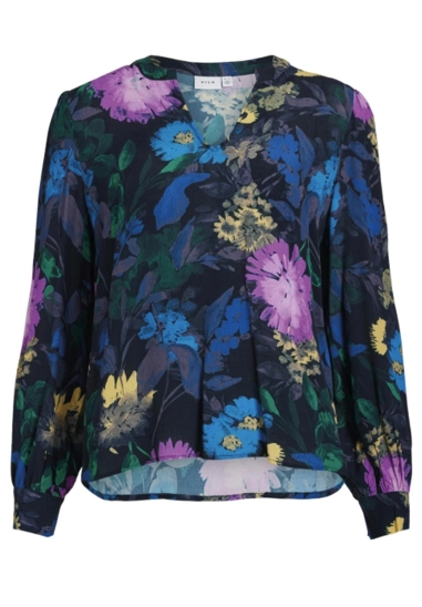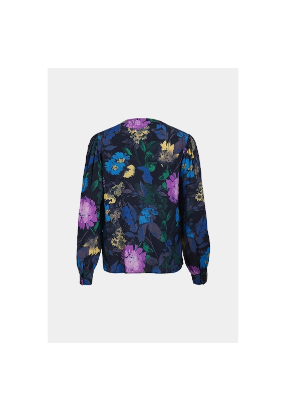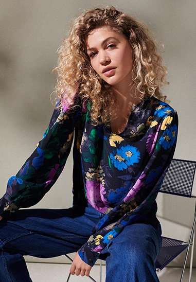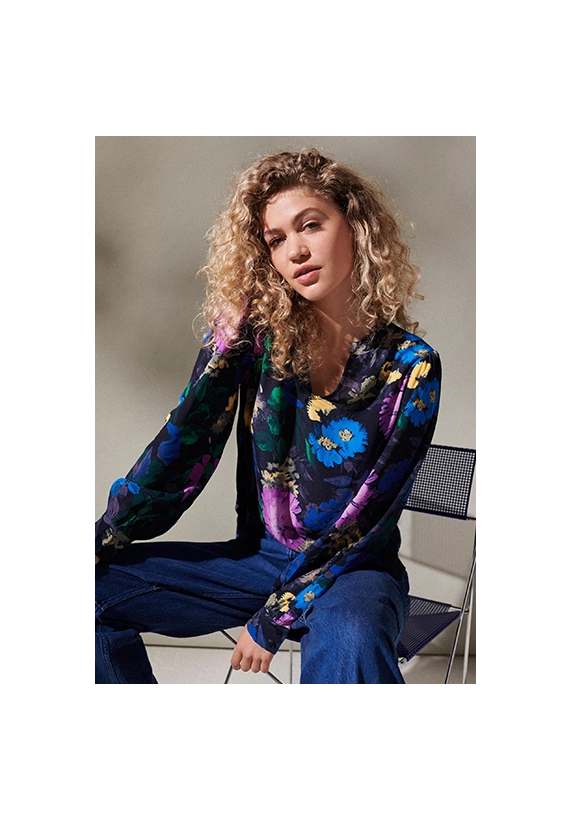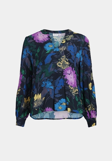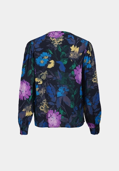 Verkrijgbaar in de kleur blauw met gekleurde bloemen.