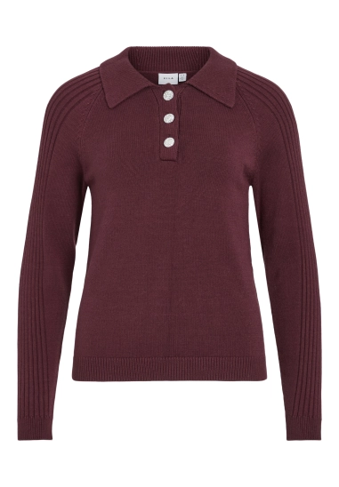 Trui Darja voor dames van het merk Vila. Verkrijgbaar in de kleur bordeaux rood.