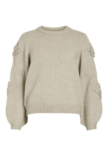 Trui Faye voor dames van het merk Vila. Verkrijgbaar in de kleur beige.