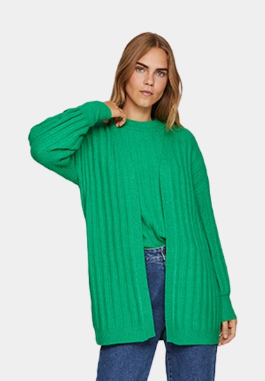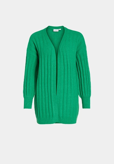 Dit openvallende vest heeft een verticale gebreide streep en is erg zacht.