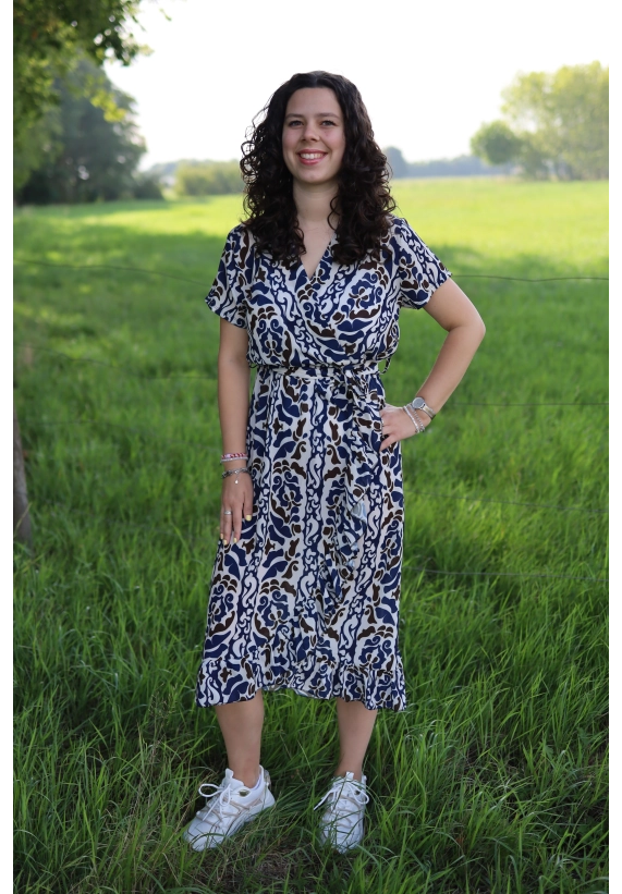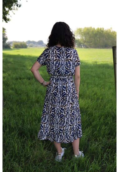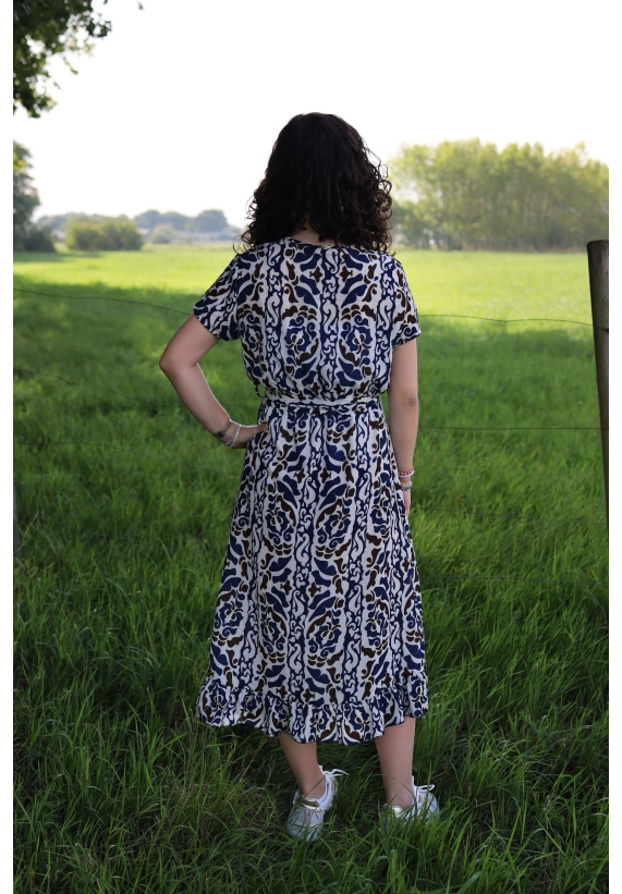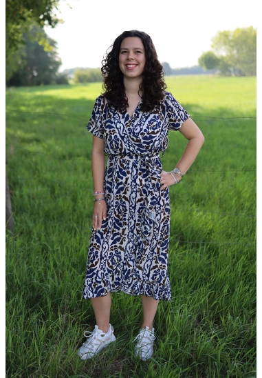 De jurk is gemaakt van een soepele stof die fijn draagt en vrolijk meebeweegt. Verkrijgbaar in 2 verschillende printjes, allebei stijlvol en speels.