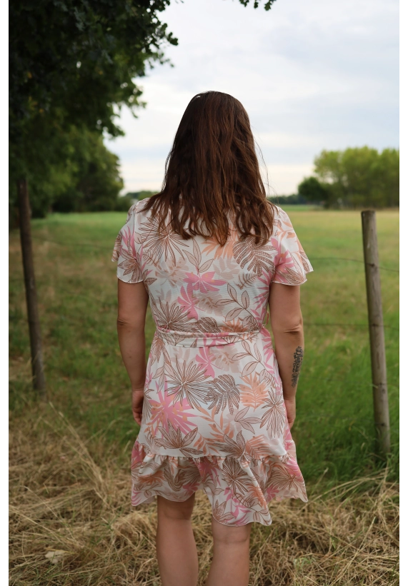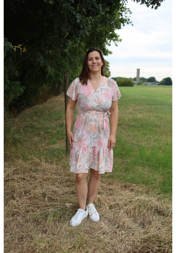 Deze dames jurk van Wild Ones is leuk en zit lekker. De jurk heeft korte mouwen, een V-hals en een ceintuur in de taille.
