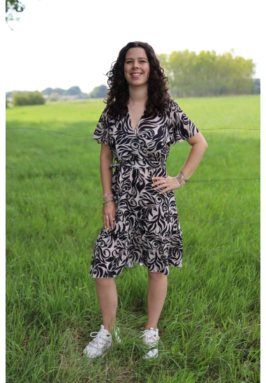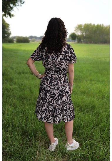 Deze dames jurk van Wild Ones is leuk en zit lekker. De jurk heeft korte mouwen, een V-hals en een ceintuur in de taille.