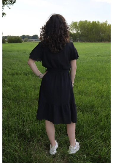 Deze jurk van Wild Ones is een echte musthave voor dit seizoen. Het model heeft korte mouwen, een vrouwelijke V-hals en een knooplint in de taille voor een mooie pasvorm. De luchtige stof draagt heerlijk comfortabel.