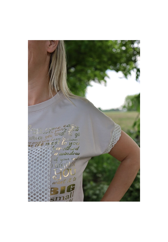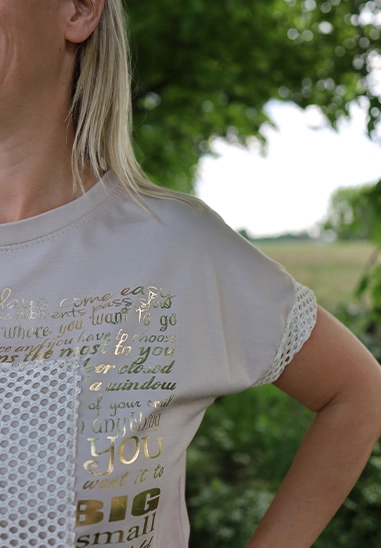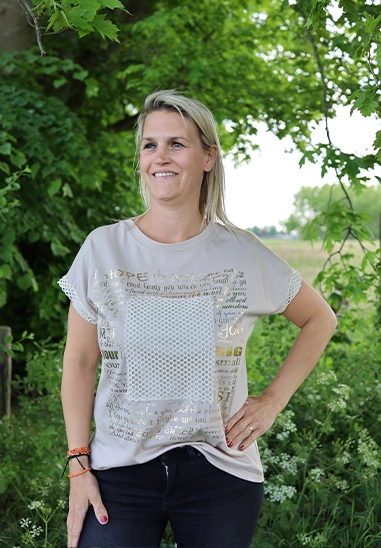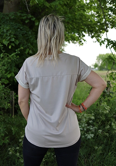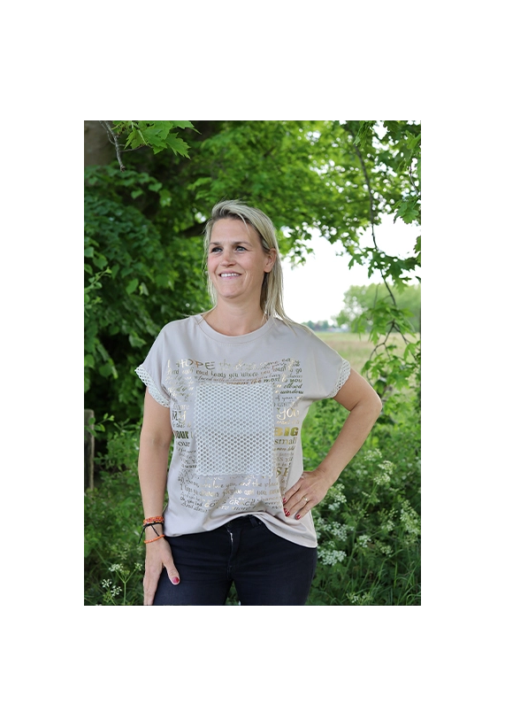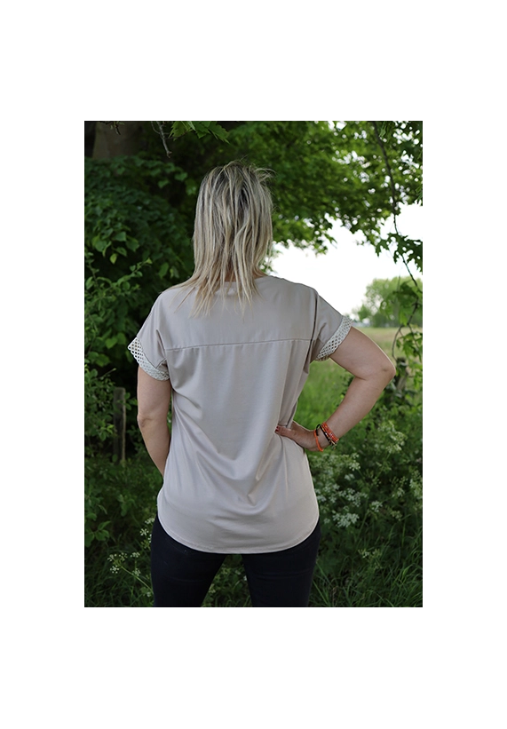 Shirt voor dames van het merk Wildones. Verkrijgbaar in de kleur blauw en beige.