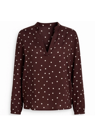 Shirt met stippen voor dames van het merk Wild Ones. Verkrijgbaar in de kleur bruin, bordeaux rood & ivoor wit.