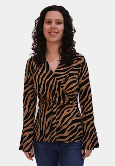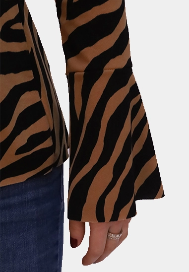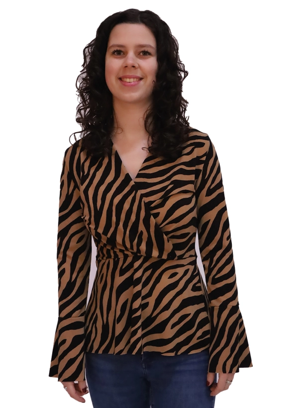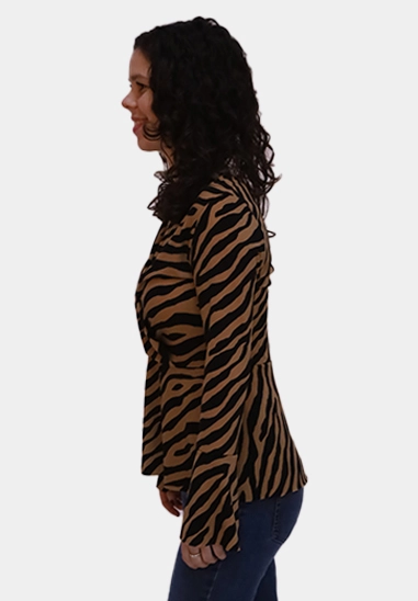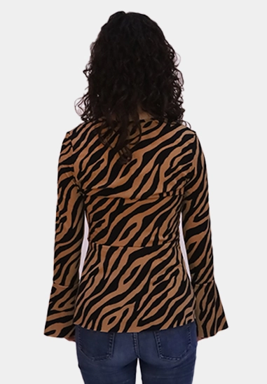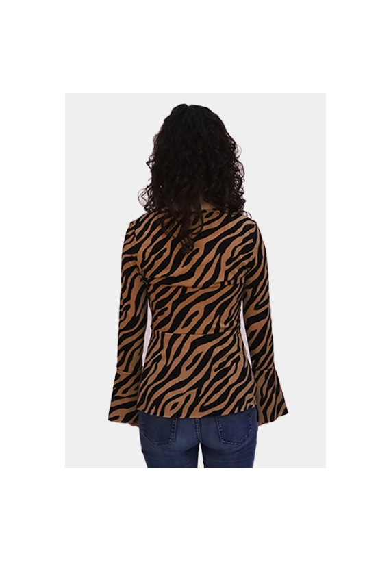 Overslag shirt met trompetmouwen van het merk Wild Ones. De top voor dames is verkrijgbaar in een zwart met camel en zwart met ecru zebraprint.