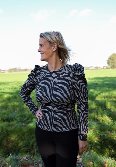 Deze leuke top heeft pofmouwen en is gemaakt van heerlijk zacht materiaal.