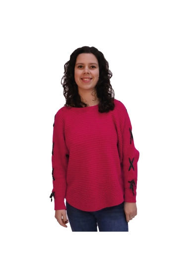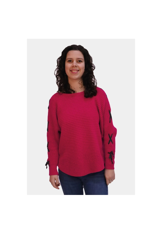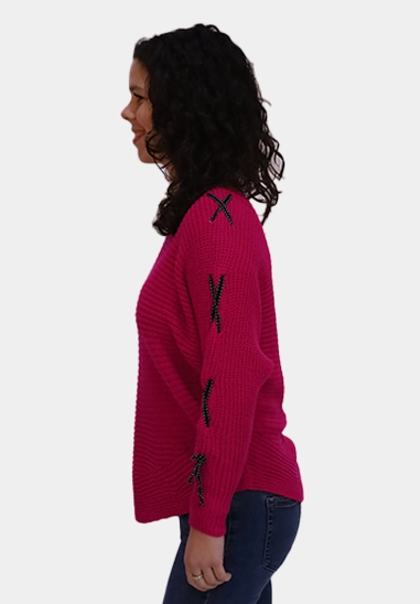 Gebreide trui met ingebreid tape voor dames van het merk van Wild Ones. Verkrijgbaar in zes verschillende kleuren.
