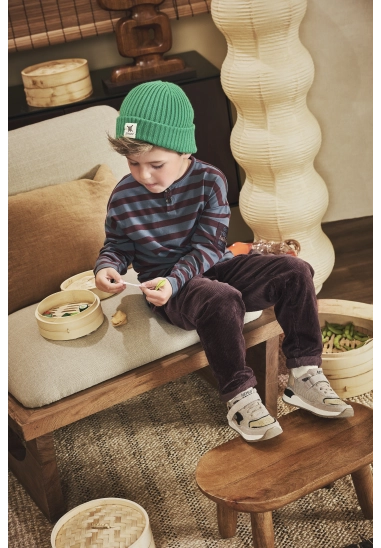 Verkrijgbaar in ribpatroon en in de kleur bordeaux rood.