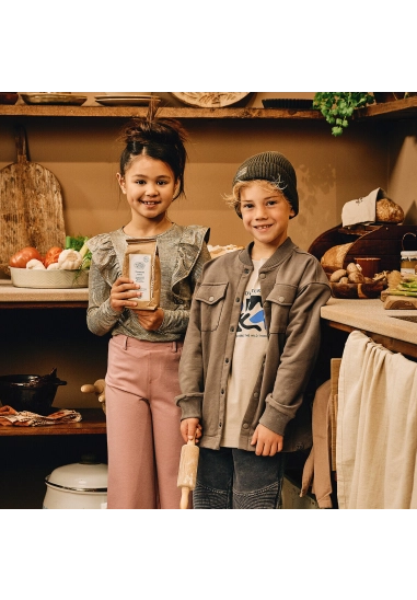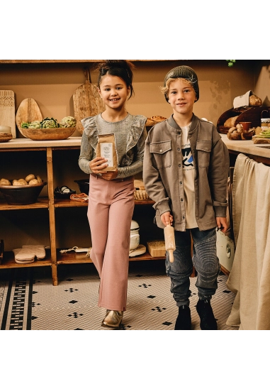 De broek heeft een elastische tailleband en is voorzien van riemlusjes.