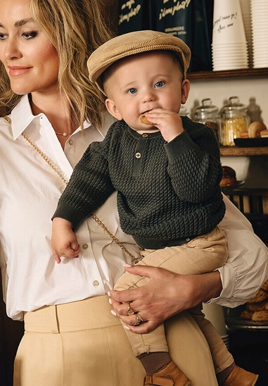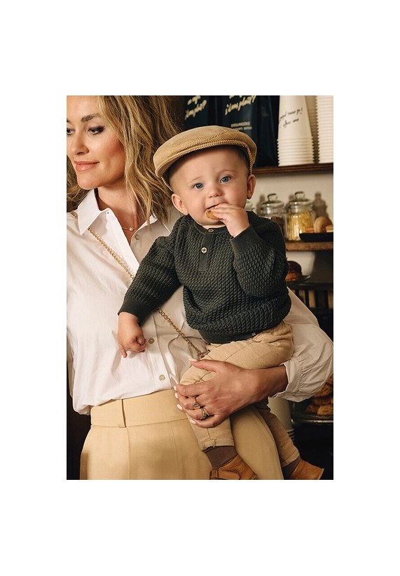 Afgewerkt met houten knoopjes en een opgerold pijpje.