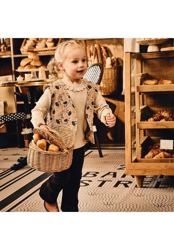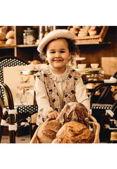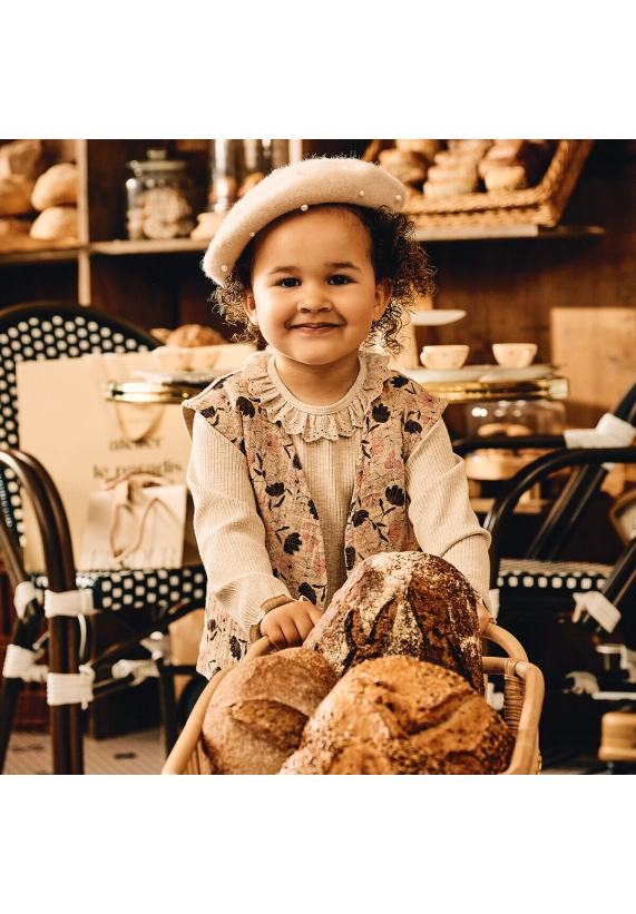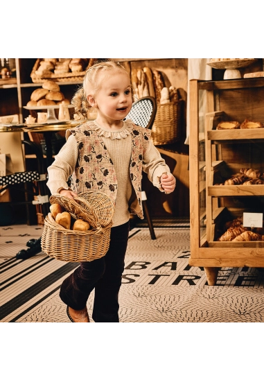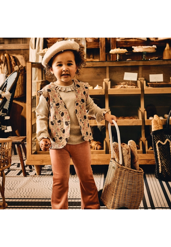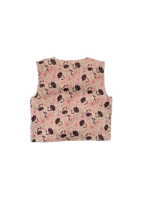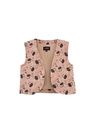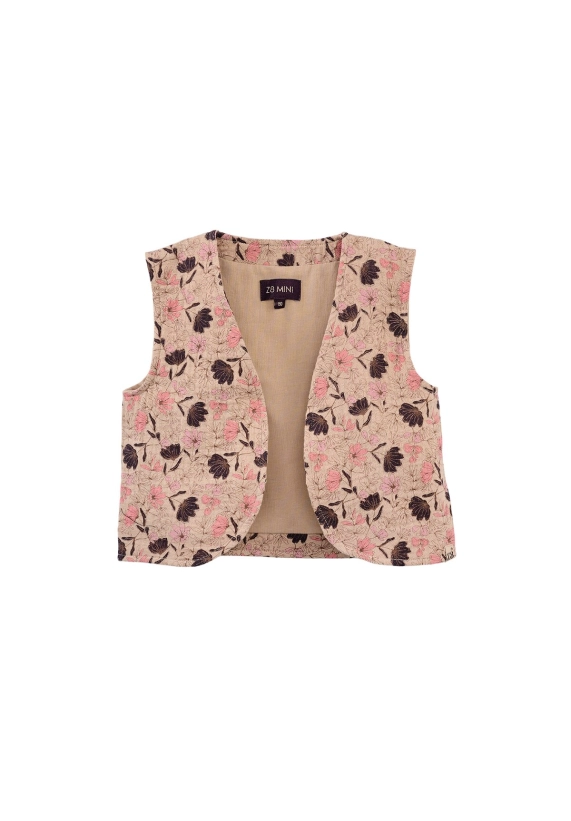 Gilet Lieve voor meisjes van het merk Z8. Dit mousseline gilet heeft een allover print met als basiskleur beige.