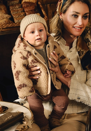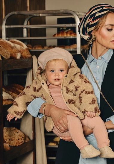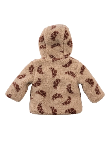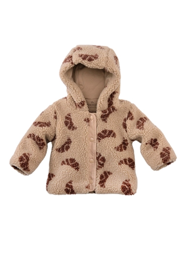 Teddy jacket in de kleur beige met een all-over print van croissants.