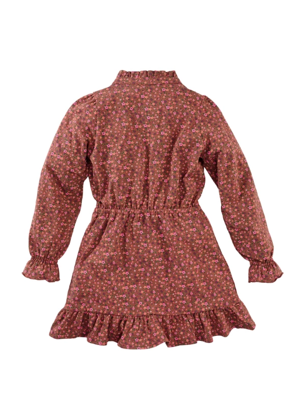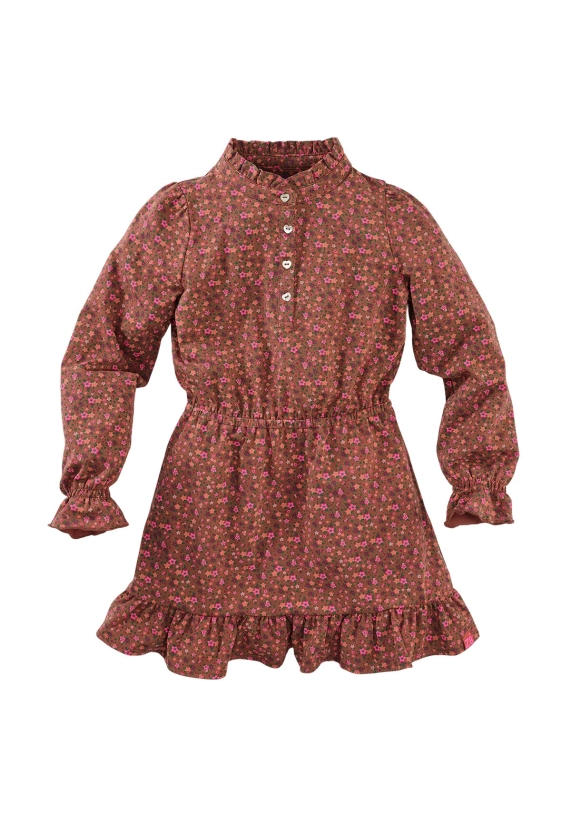 Met een all-over print van kleine bloemetjes en is afgewerkt met ruffles langs de hals en lengte.