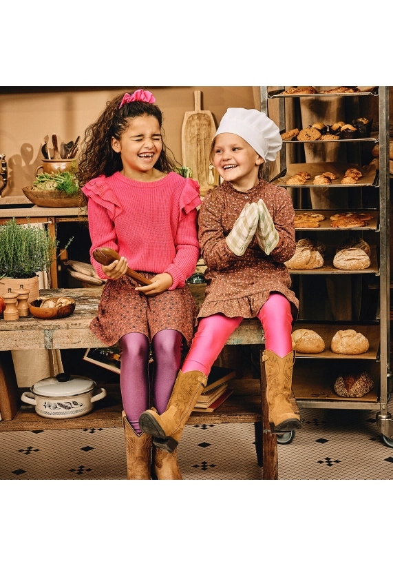 Voorzien van een smalle elastische tailleband en heeft elastiek in de mouwen voor een speels effect.