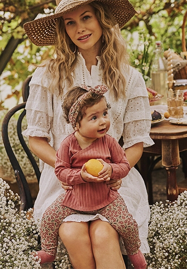 Verkrijgbaar in de kleur beige met roze bloemetjes.