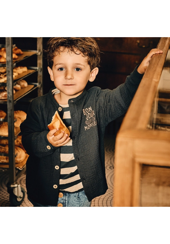 Longsleeve Preston voor jongens van het merk Z8. Dit gestreepte shirtje is verkrijgbaar in het donkergrijs met beige.
