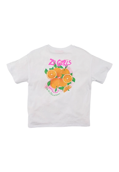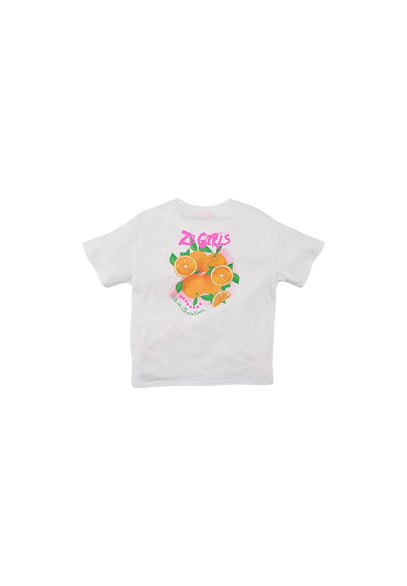 Oversized shirt Cynzia voor meisjes van het merk z8. met aan de achterkant een gave sinaasappelprint.