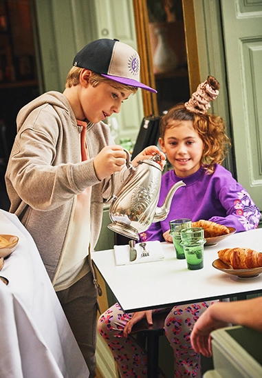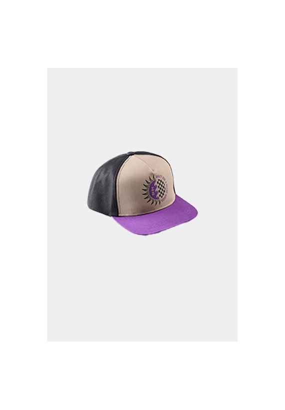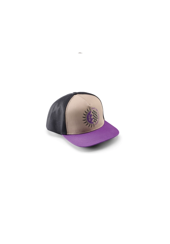 Verkrijgbaar in de combikleur zwart/paars/beige.