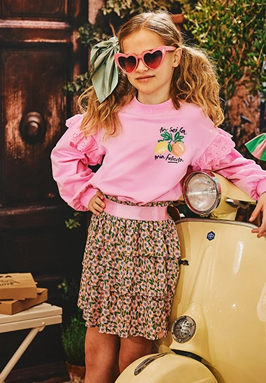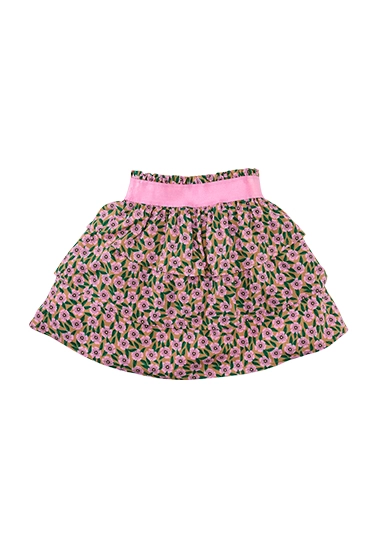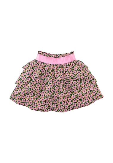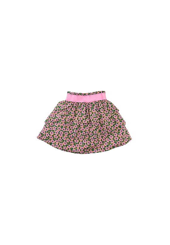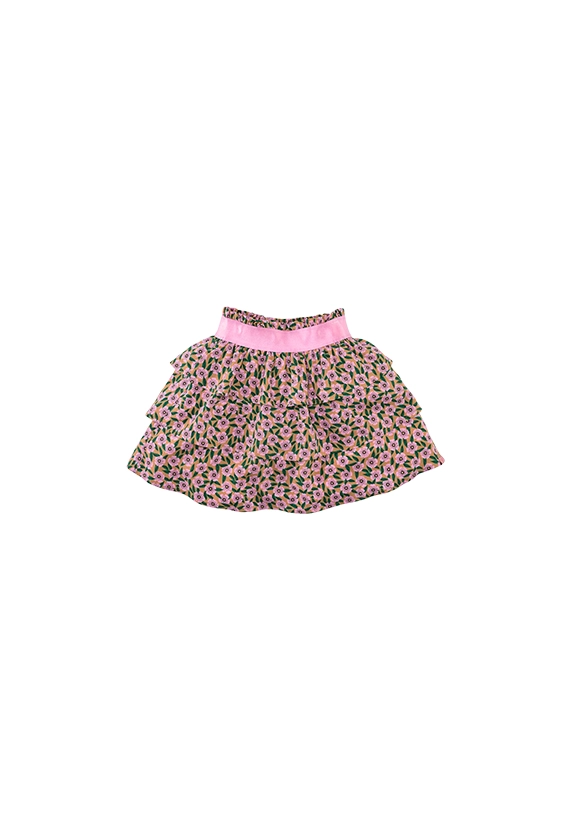 Elastieken band en drie ruffle lagen & all-over-bloemenprint.