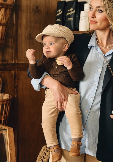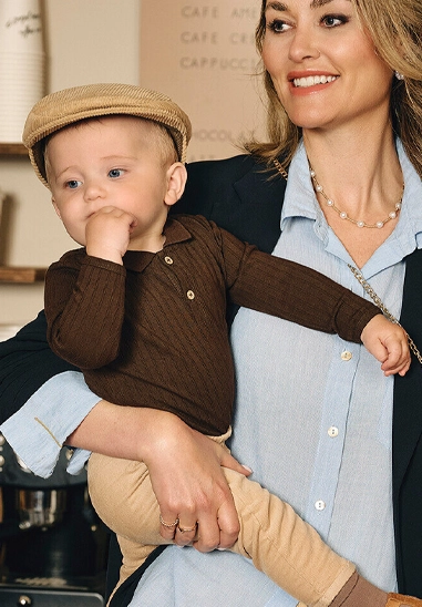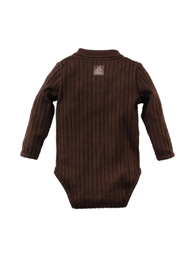 Voorzien van een blousekraagje en heeft een rijtje met houten knoopjes.