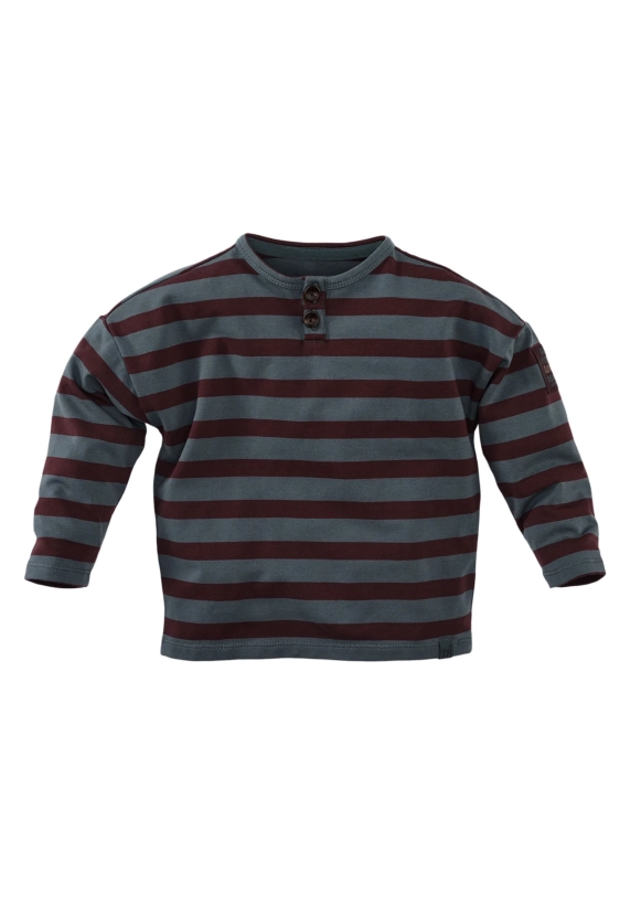 Gestreept shirt Gerben voor jongens van het merk Z8. Verkrijgbaar in de kleur blauw met bordeaux rode strepen.
