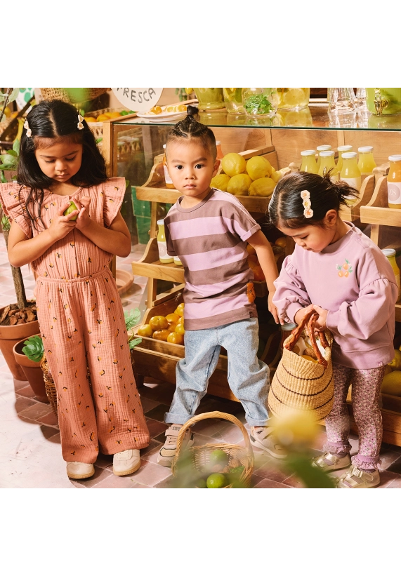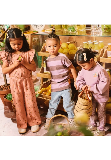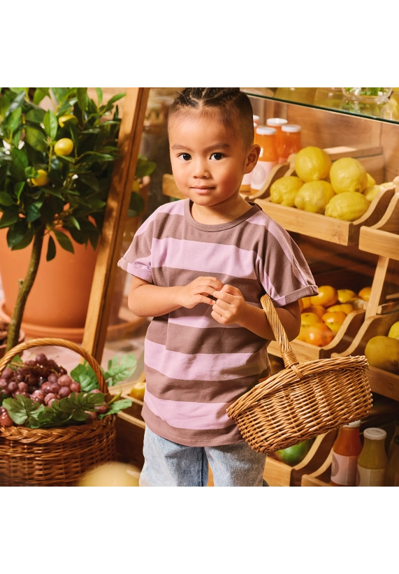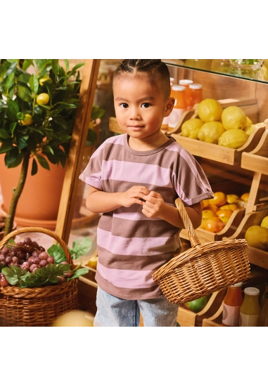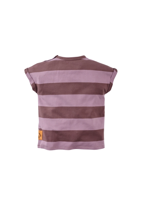 Omslag bij de mouwtjes. Verkrijgbaar in de combi kleuren lila/paars.
