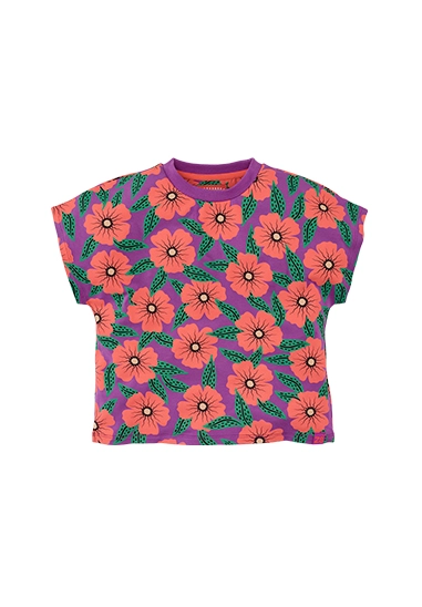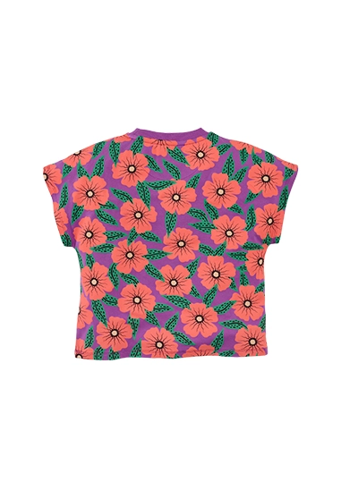 Verkrijgbaar in de kleur paars met oranje bloemen.