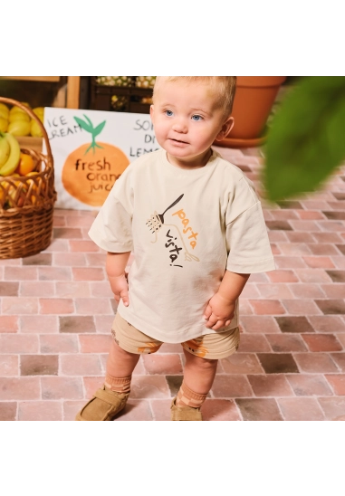 Met leuke print op het shirtje met de tekst 'Pasta Vista'