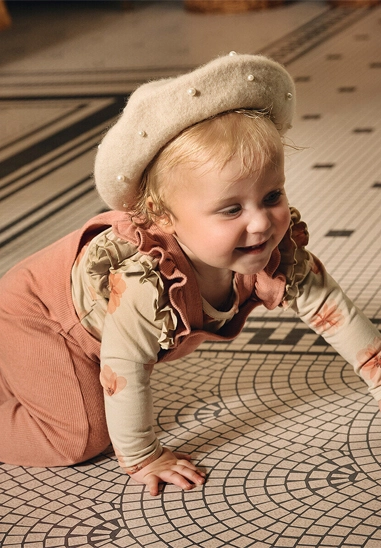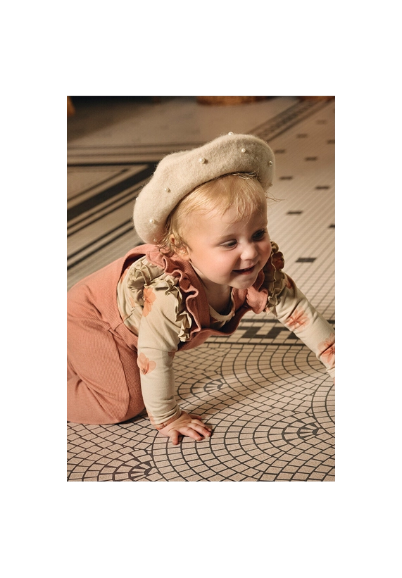 De kleur is een all-over print van aquarel bloemen in de kleur roze met als ondergrond beige.