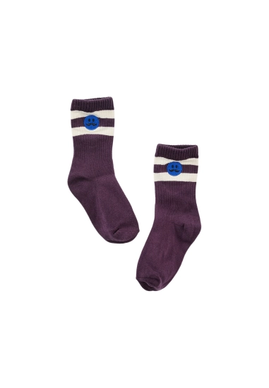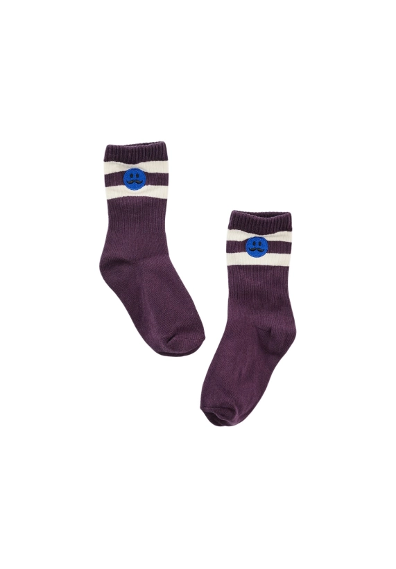 Hebben een badge van een smiley op de zijkant en twee ingebreide strepen.