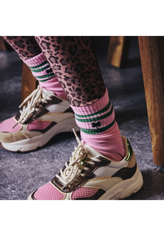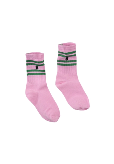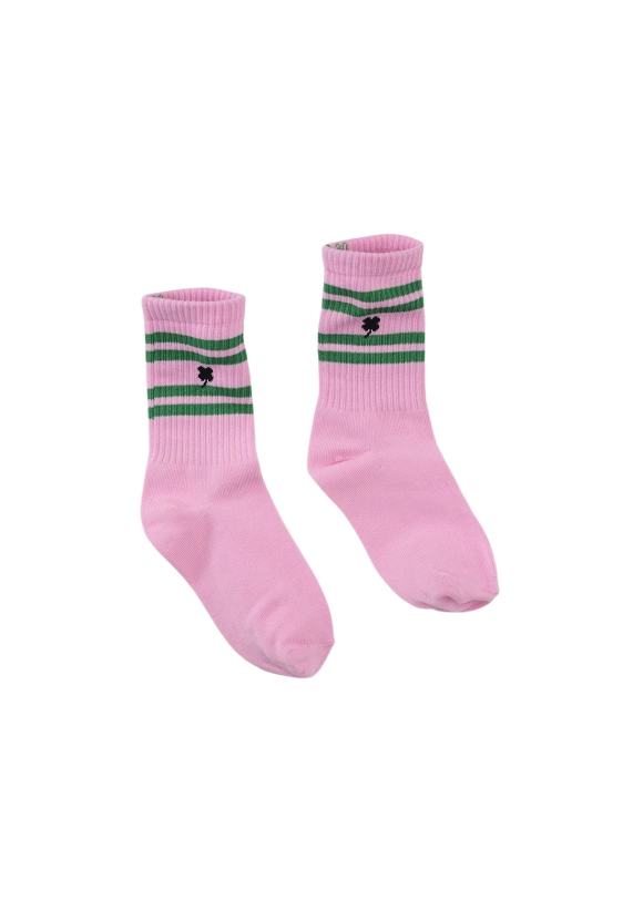 De Z8 Lovina sokken brengen kleur en geluk. Deze vrolijke sokken hebben gekleurde strepen en een klein klavertje vier detail. Verkrijgbaar in wit en sorbet pink.