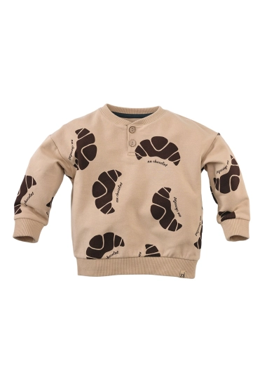 Sweatertje Aloin van het merk Z8. De sweater heeft een allover print en een knoopsluiting bij de hals. Verkrijgbaar in de kleur toffee.