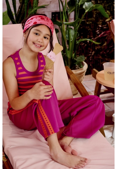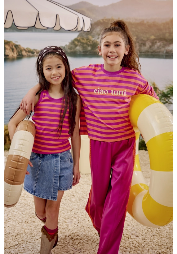 Top Fanny voor meisjes van het merk Z8. Verkrijgbaar in de kleur paars met oranje streep.