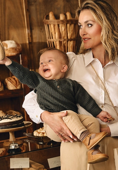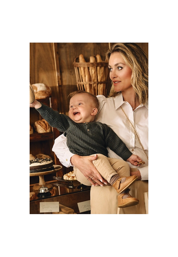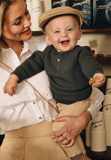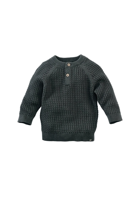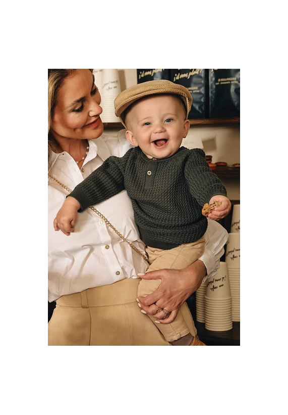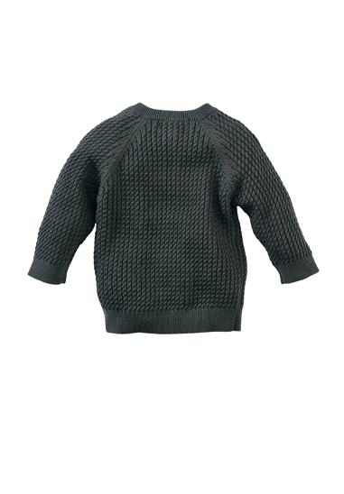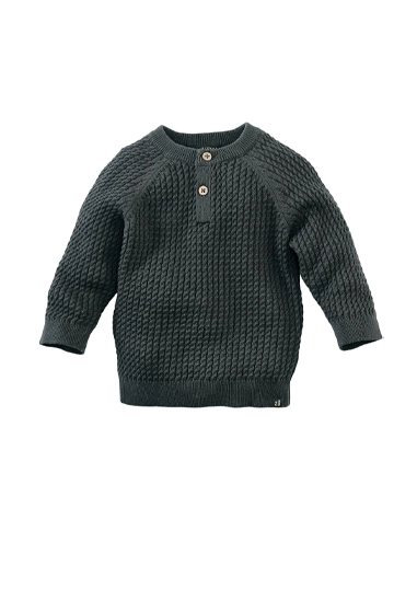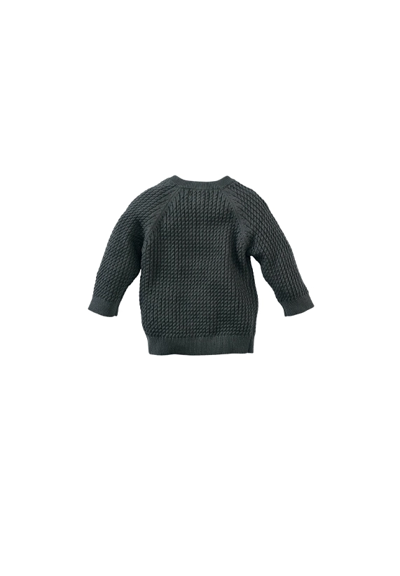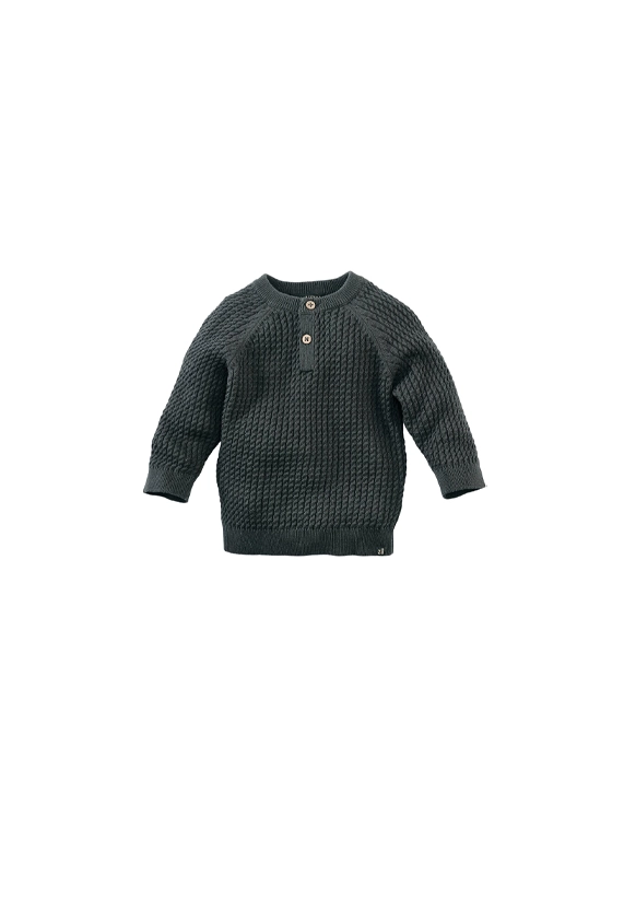 Met aan de voorzijde een rijtje met houten knoopjes.