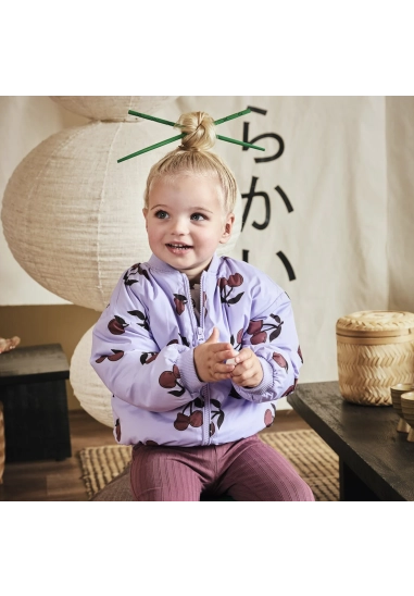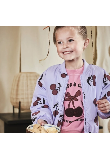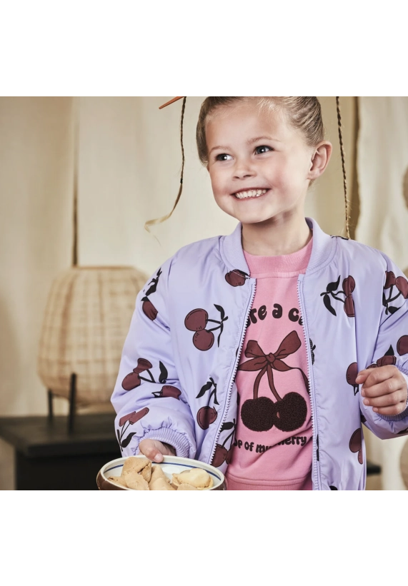 Verkrijgbaar in de kleur lila en in met allover kersenpatroon.