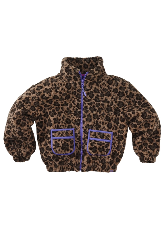 De Z8 Marika winterjas is een stoere en warme teddy jas met een trendy panterprint in de kleur Amber Brown/AOP. De paarse afwerking langs de rits en zakken geeft de jas een opvallende twist.