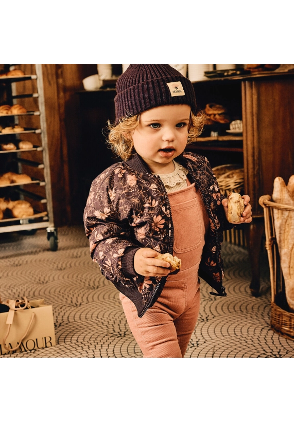 Winterjasje Beaudine voor meisjes van het merk Z8. De jas heeft een allover print. Verkrijgbaar in de kleur blueberry muffin.