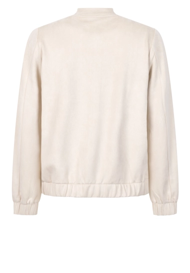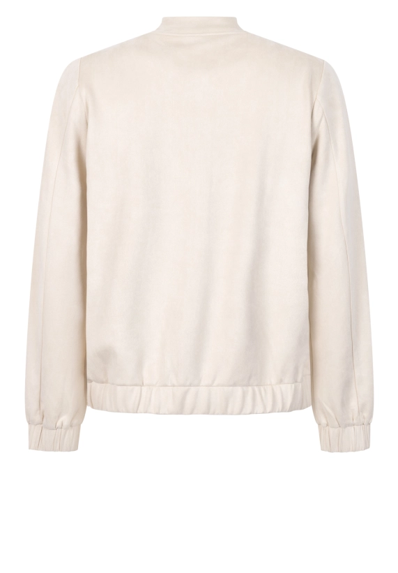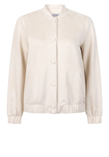 Met knoopsluiting en elastieken band onderaan het jasje en de mouwen.
