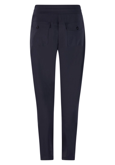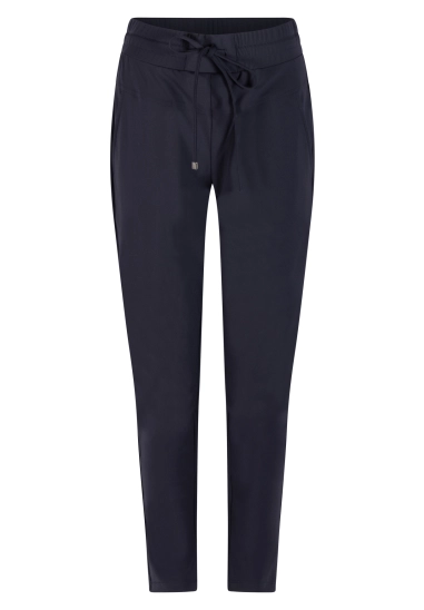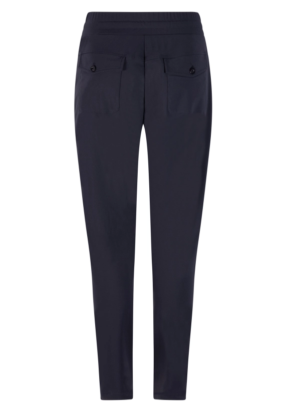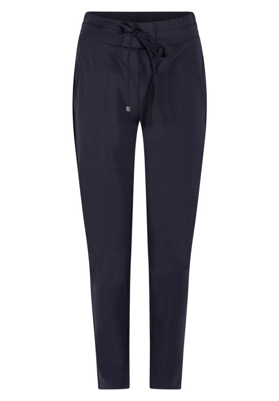 Lange broek in travel kwaliteit voor dames. Deze broek van het merk ZOSO heeft een elastieke band voor perfect draagcomfort. Verkrijgbaar in het donker blauw.