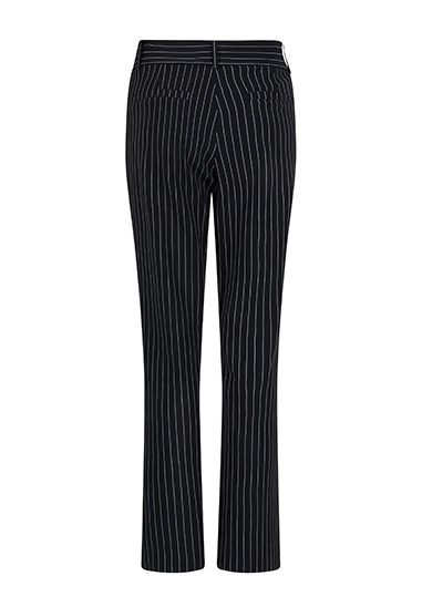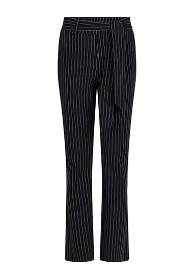 Flared broek Veronica voor dames van het merk Zoso. De broek heeft een krijtstreep en is gemaakt van een prachtige kwaliteit travel stof. Verkrijgbaar in het zwart met een witte streep.