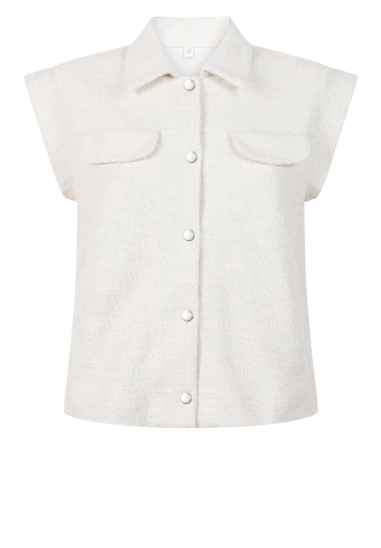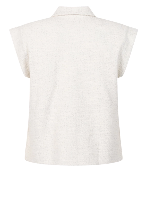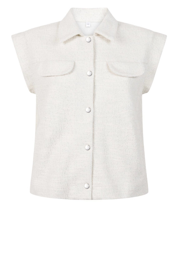 Met allover lurexdraad in het gilet.