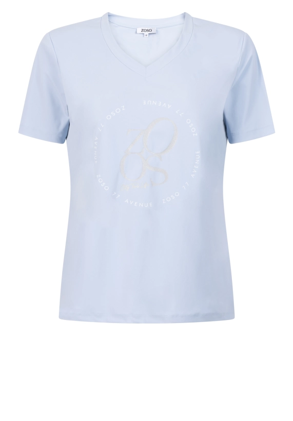 T-shirt korte mouwen voor dames. Het shirt is gemaakt van travel kwaliteit en heeft een v-hals. Ook heeft dit t-shirt van het merk ZOSO een leuke print op de voorzijde en is goed te combineren bij veel collectie items uit de zomercollectie van 2025.